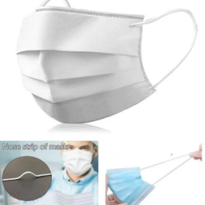 Máscara facial descartável dupla camada, tecido não tecido TNT 40 gramas cada, com elástico roliço de 2,8mm extremamente confortável, e ferrilho para ajuste Nalsa, é confeccionada com duas camadas de polipropileno.