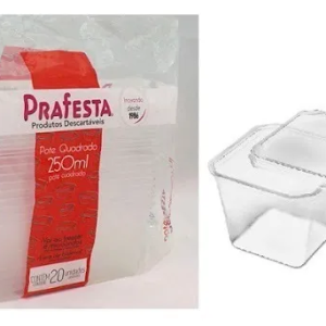 POTE QUADRADO 250 ML COM TAMPA PRAFESTA